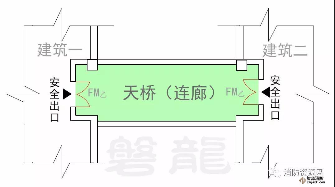 疏散樓梯間、防煙樓梯間的前室、室外樓梯以及符合要求條件的連廊和天橋等,通常認為是相對安全的區域,火災條件下人員進入這些區域,即可認為到達安全區域。因此,這些區域的入口通常稱為安全出口,比如敞開樓梯間的出口、封閉樓梯間的門、防煙樓梯間的前室門,室外疏散樓梯的出口,符合條件的連廊和天橋出口,以及直接通向室外安全區域的房門等,這些出入口均屬于安全出口。