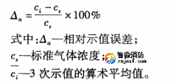 度的氣體通人3次,讀取各穩定示值ci。按公式(1)分別計算出不同濃度測量值的示值誤差△a。